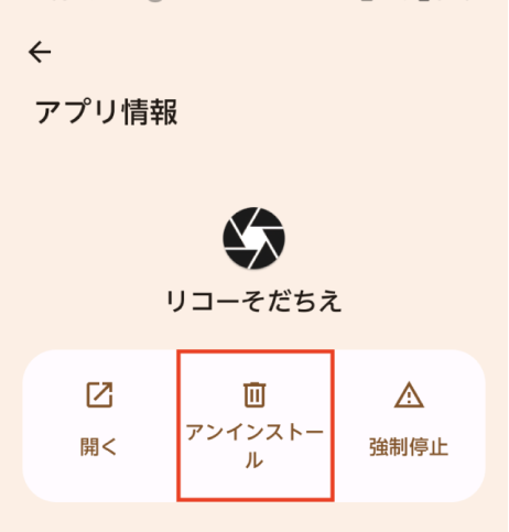 ホーム画面の「リコーそだちえ」アイコンを長押しして、アイコンの削除を行います